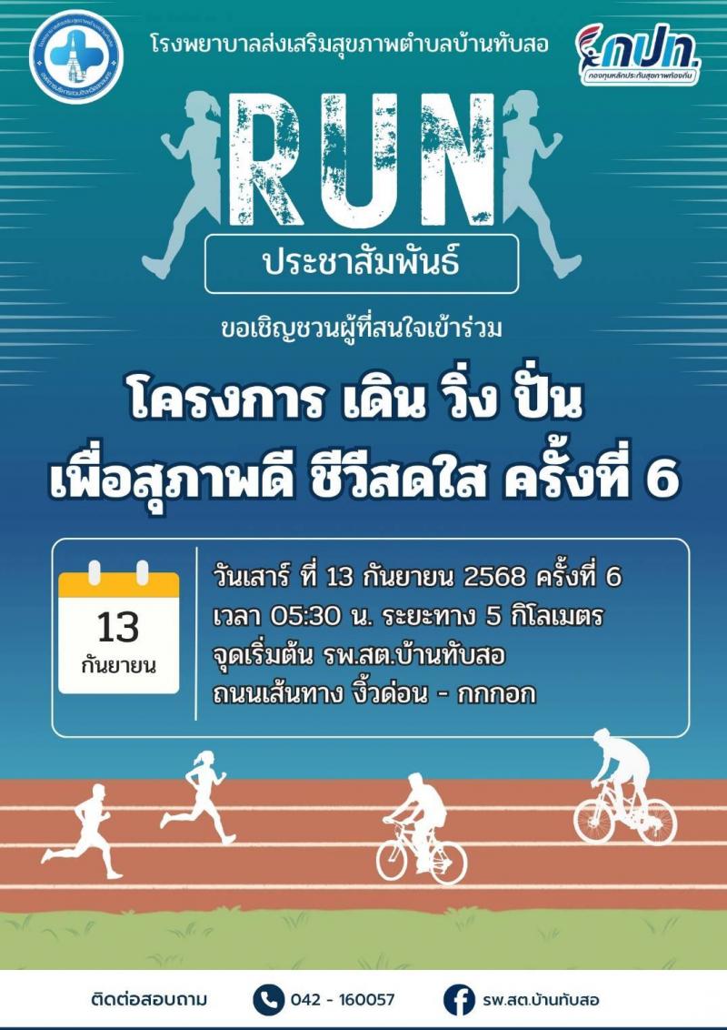 รายละเอียด : วันที่​ 13​ กันยายน​2568 ​เวลา06.00 นายถนอม สมผล นายก​เทศมนตรี​ตำบล​งิ้วด่อน​เปิดโครงการกิจกรรม​"เดินวิ่ง ปั่น เพื่อสุขภาพ​ดี ชีวีสดใส ครั้งที่ 6