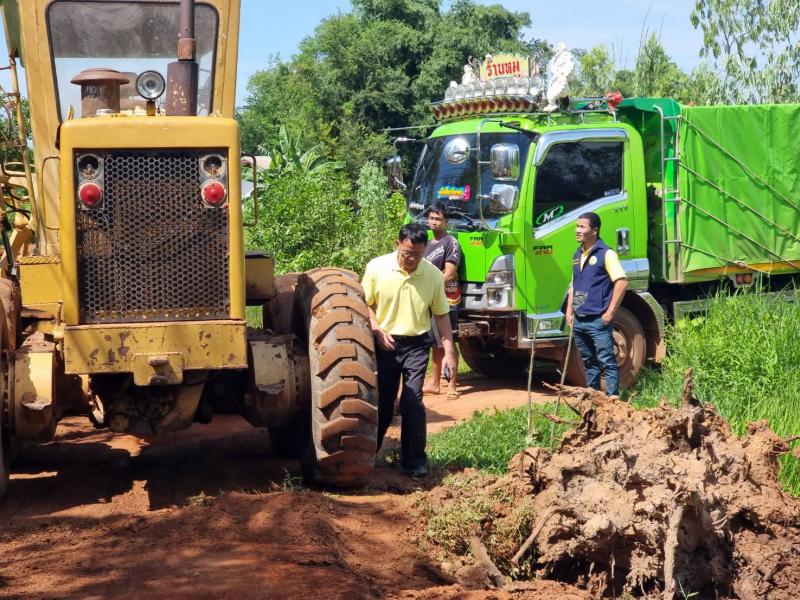 เวลา 09.55 นายถนอม สมผล นายกเทศมนตรีตำบลงิ้วด่อน พร้อมเจ้าหน้าที่กองช่างและคณะกรรมการตรวจการจ้างลงตรวจสอบการดำเนินการก่อสร้างถนนคอนกรีตซอยหนองจ่าโท