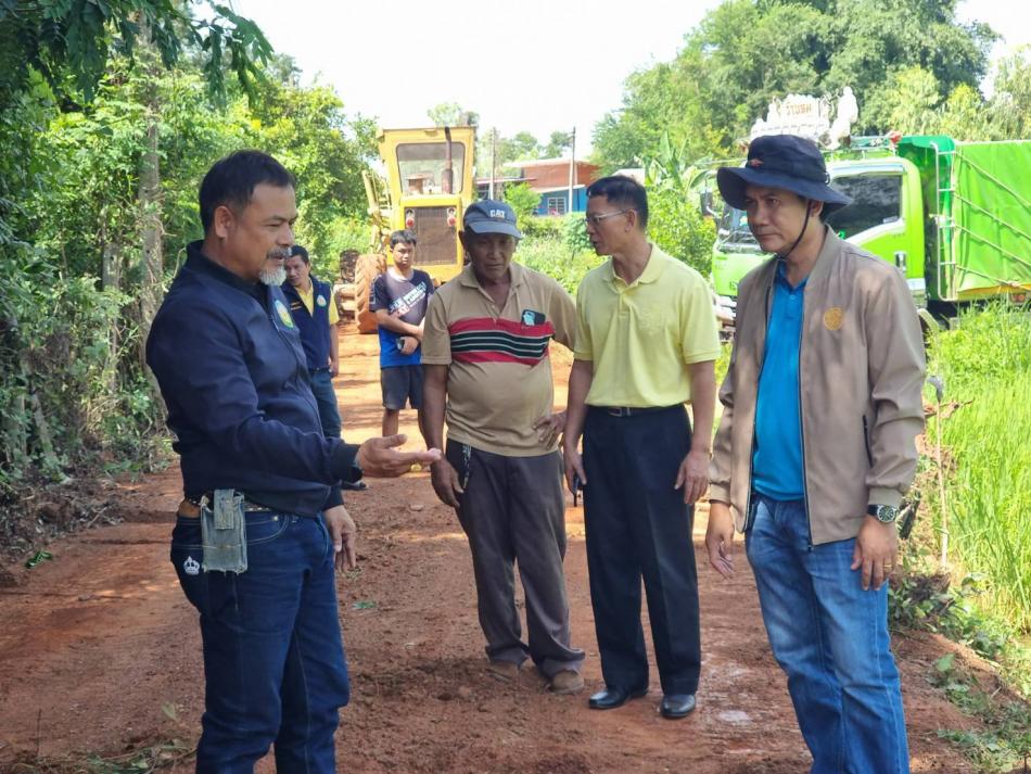 นายถนอม สมผล นายกเทศมนตรีตำบลงิ้วด่อน พร้อมเจ้าหน้าที่กองช่างและคณะกรรมการตรวจการจ้างลงตรวจสอบการดำเนินการก่อสร้างถนนคอนกรีตสายพังเม็กถึงคลองส่งน้ำ [5 สิงหาคม 2568]