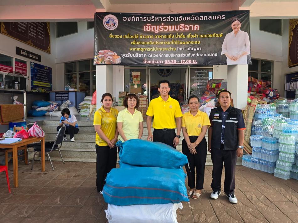 นายสิรภพ สมผล รองนายกเทศมนตรีตำบลงิ้วด่อน เข้ารับมอบเสื้อผ้าใหม่ จากคุณยายนวย ผ่ามถิ ผู้ก่อตั้งและเจ้าของแบรนด์ "น้องนิด" และเป็นตัวแทนนำไปส่งมอบให้กับศูนย์รับบริจาคของ อบจ.สกลนคร [1 สิงหาคม 2568]