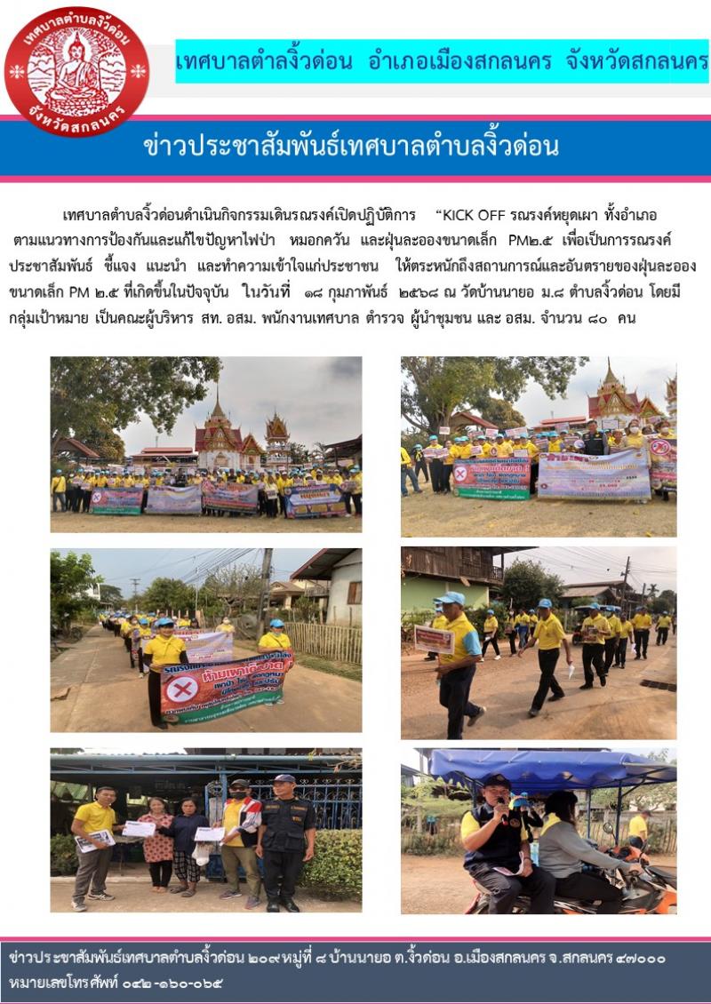 กิจกรรมเปิดปฏิบัติการ KICK OFF รณรงค์หยุดเผา ทั้งอำเภอ ตามแนวทางการป้องกันและแก้ไขปัญหาไฟป่า หมอกควัน และฝุ่นละอองขนาดเล็ก PM 2.5 [18 กุมภาพันธ์ 2568]