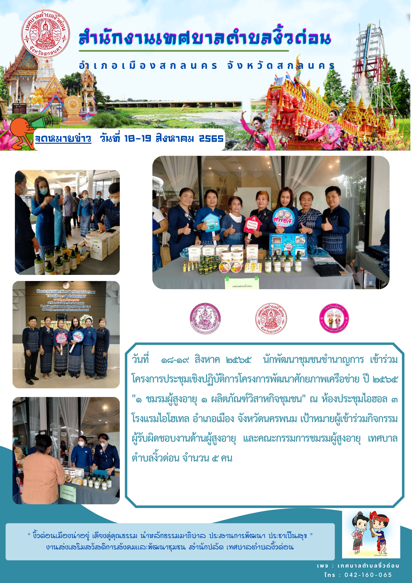 โครงการประชุมเชิงปฏิบัติการโครงการพัฒนาศักยภาพเครือข่าย ปี ๒๕๖๕ "๑ ชมรมผู้สูงอายุ ๑ ผลิตภัณฑ์วิสาหกิจชุมชน" [18 สิงหาคม 2565]