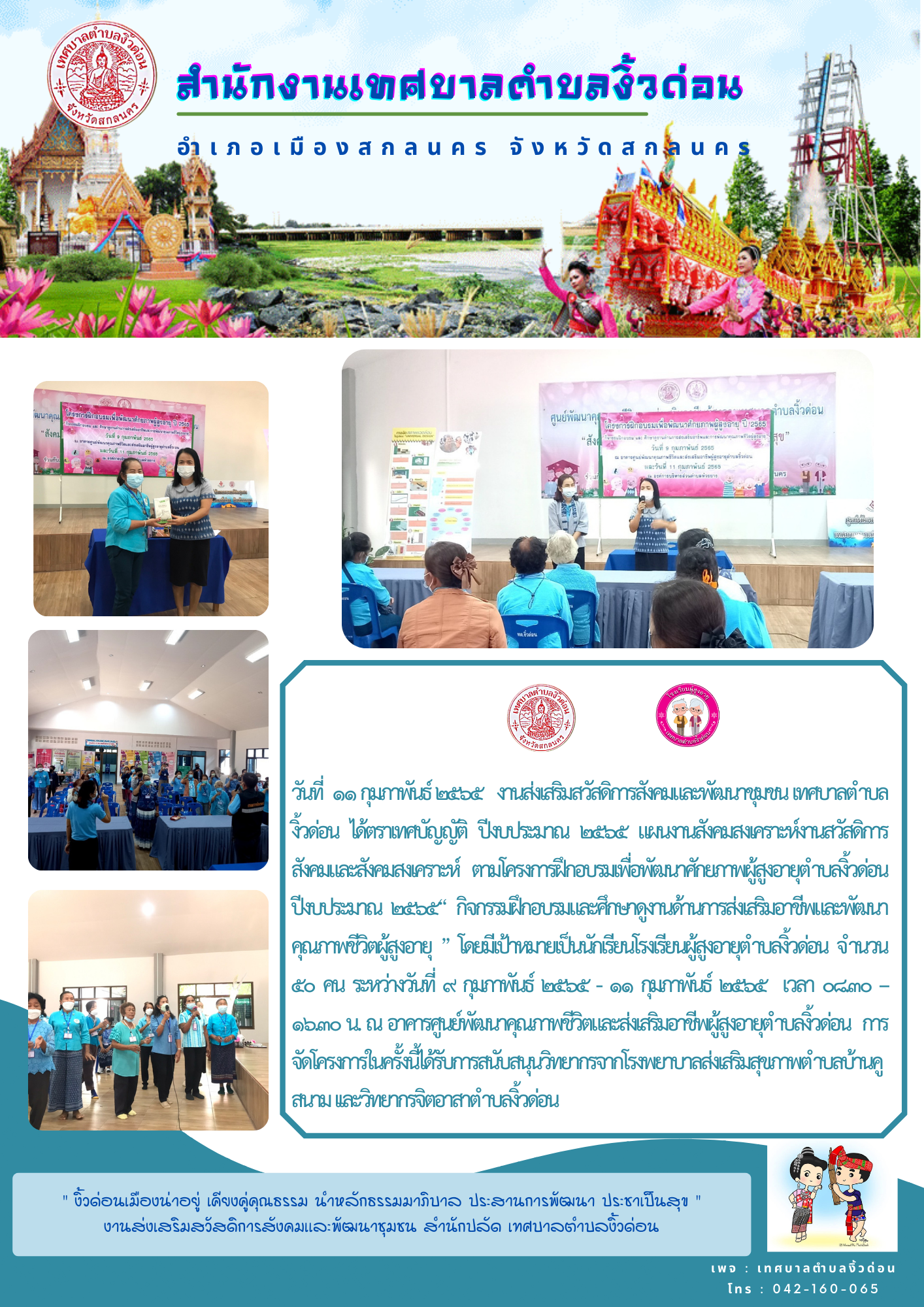 โครงการฝึกอบรมเพื่อพัฒนาศักยภาพผู้สูงอายุตำบลงิ้วด่อน ปีงบประมาณ ๒๕๖๕ [9 กุมภาพันธ์ 2565]