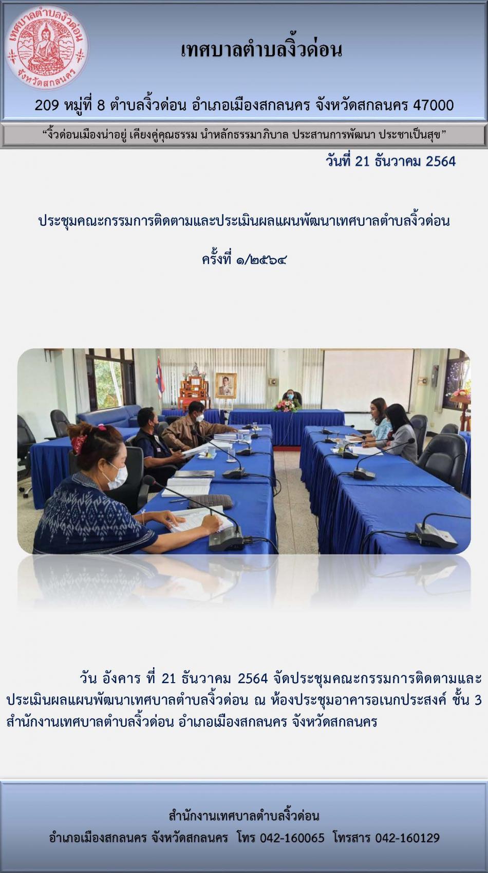 ประชุมคณะกรรมการติดตามและประเมินผลแผนพัฒนาเทศบาลตำบลงิ้วด่อน ครั้งที่ 1/2564 [21 ธันวาคม 2564]