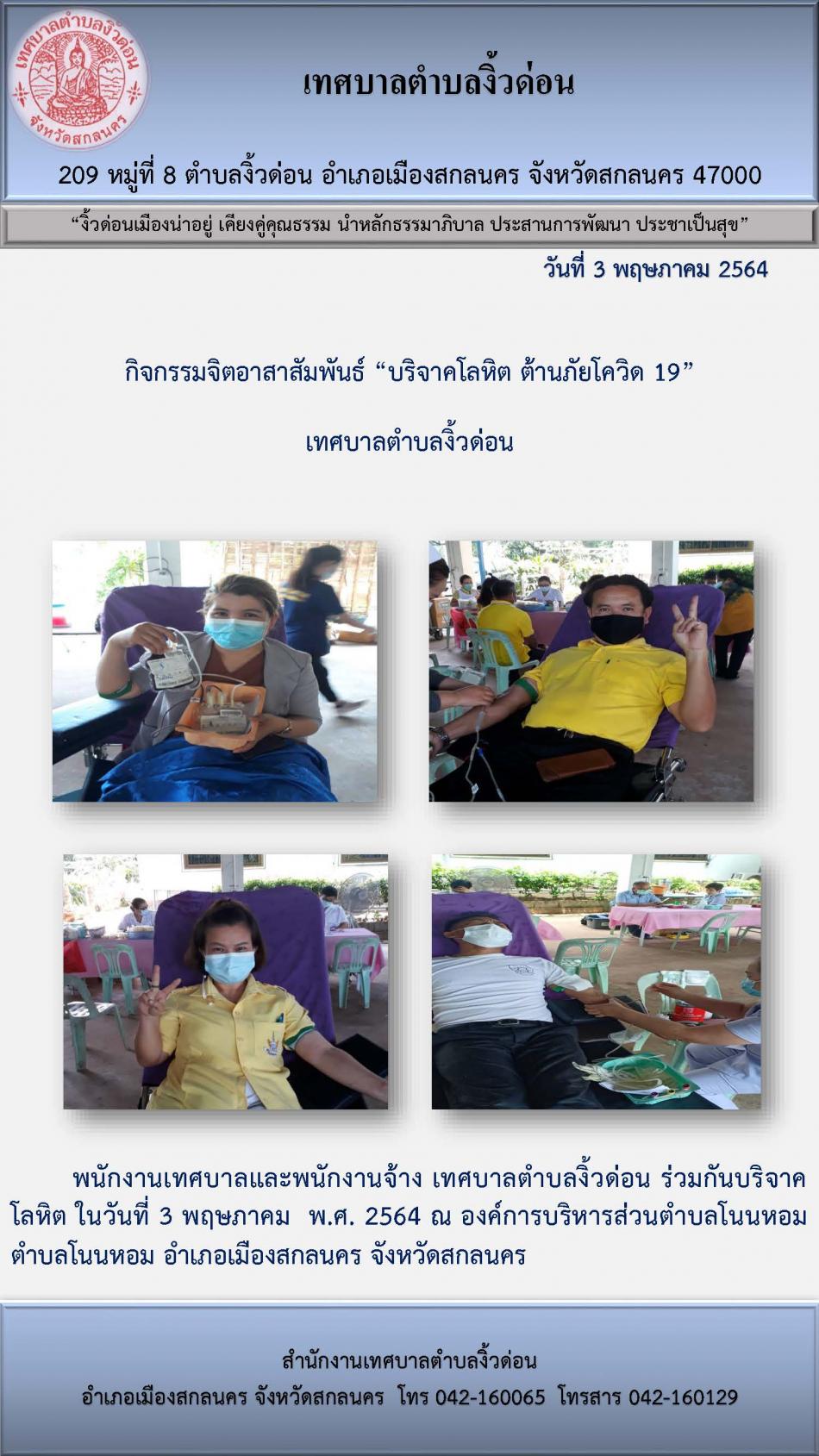 กิจกรรมจิตอาสาสัมพันธ์ “บริจาคโลหิต ต้านภัยโควิด 19” เทศบาลตำบลงิ้วด่อน [3 พฤษภาคม 2564]