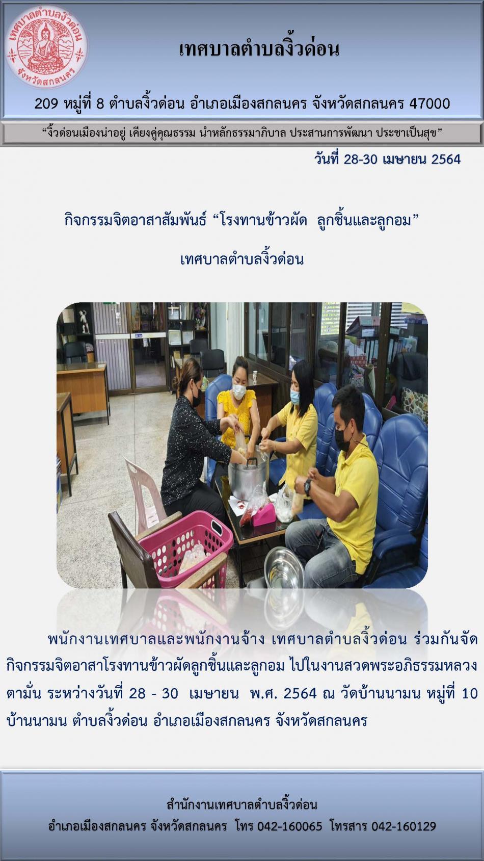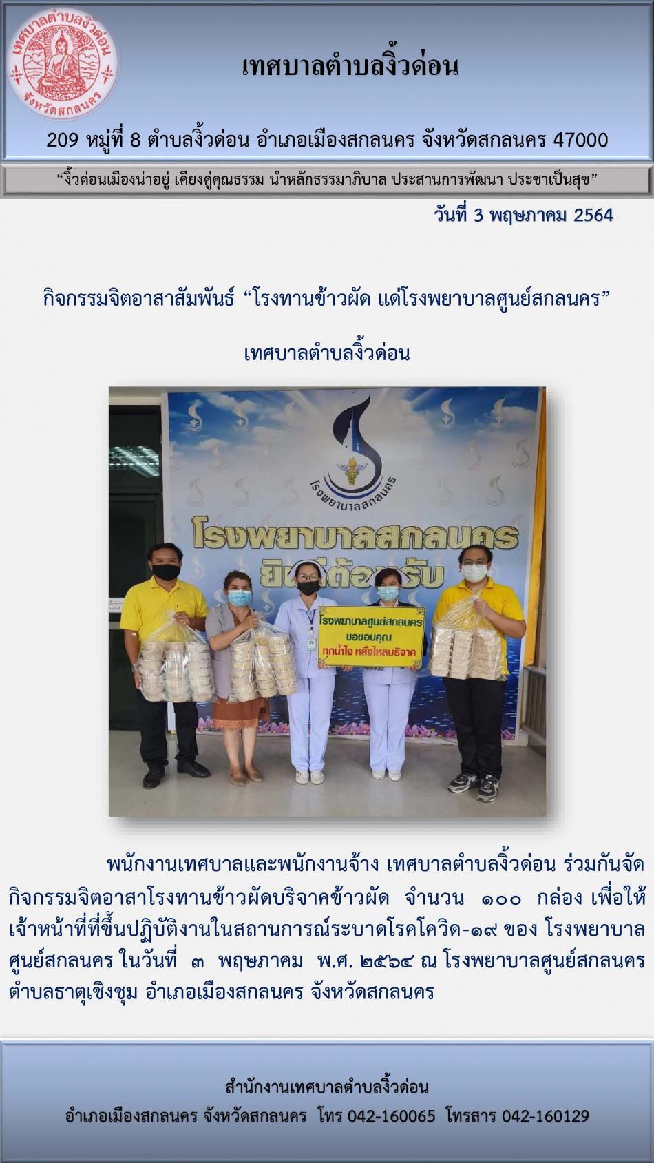 กิจกรรมจิตอาสาสัมพันธ์ “โรงทานข้าวผัด แด่โรงพยาบาลศูนย์สกลนคร” เทศบาลตำบลงิ้วด่อน [3 พฤษภาคม 2564]
