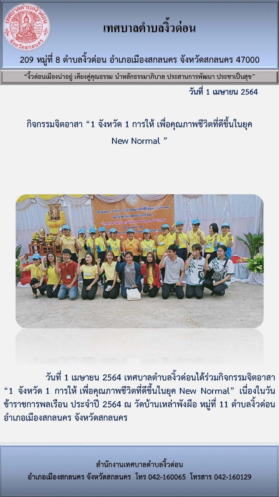 กิจกรรมจิตอาสา “1 จังหวัด 1 การให้ เพื่อคุณภาพชีวิตที่ดีขึ้นในยุค New Normal ” [1 เมษายน 2564]