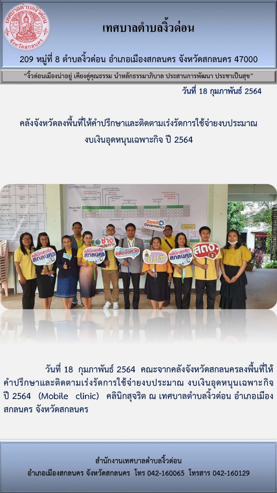 คลังจังหวัดลงพื้นที่ให้คำปรึกษาและติดตามเร่งรัดการใช้จ่ายงบประมาณ งบเงินอุดหนุนเฉพาะกิจ ปี 2564 [17 กุมภาพันธ์ 2564]