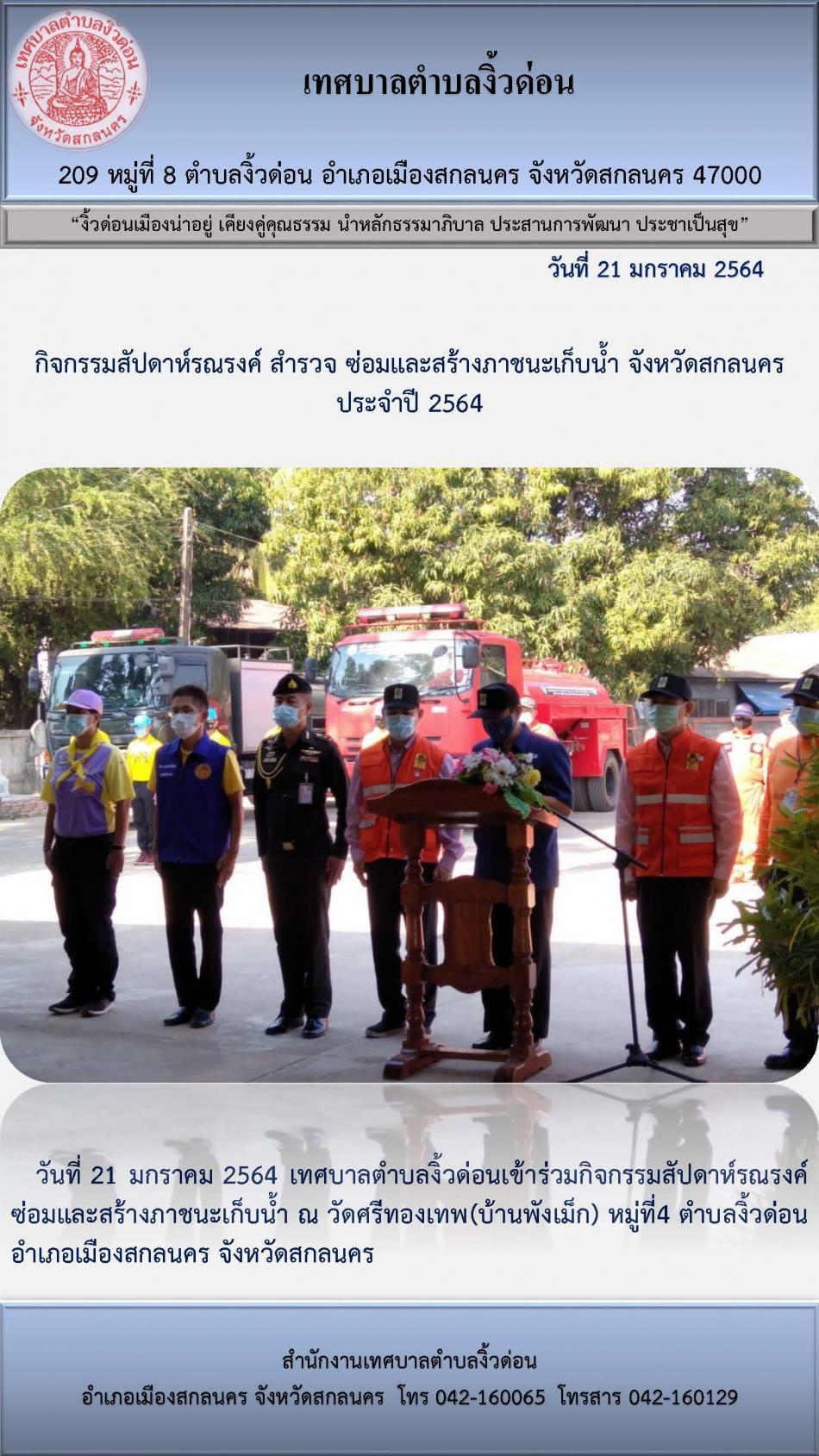 กิจกรรมสัปดาห์รณรงค์ สำรวจ ซ่อมและสร้างภาชนะเก็บน้ำ จังหวัดสกลนคร ประจำปี 2564