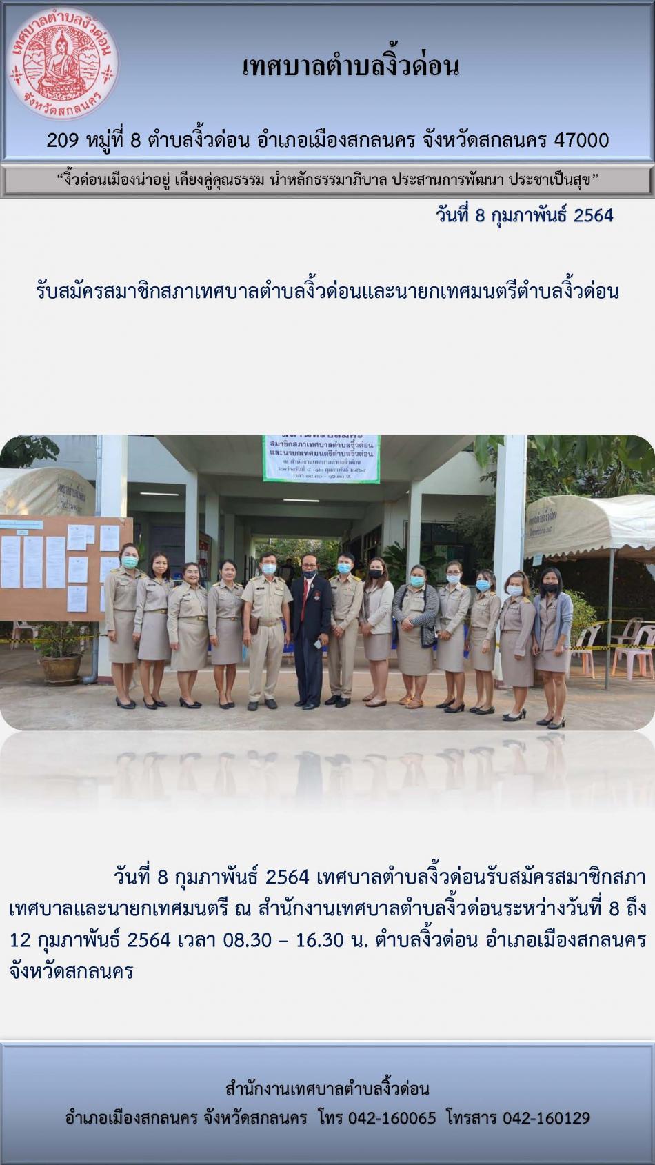 รับสมัครสมาชิกสภาเทศบาลตำบลงิ้วด่อนและนายกเทศมนตรีตำบลงิ้วด่อน