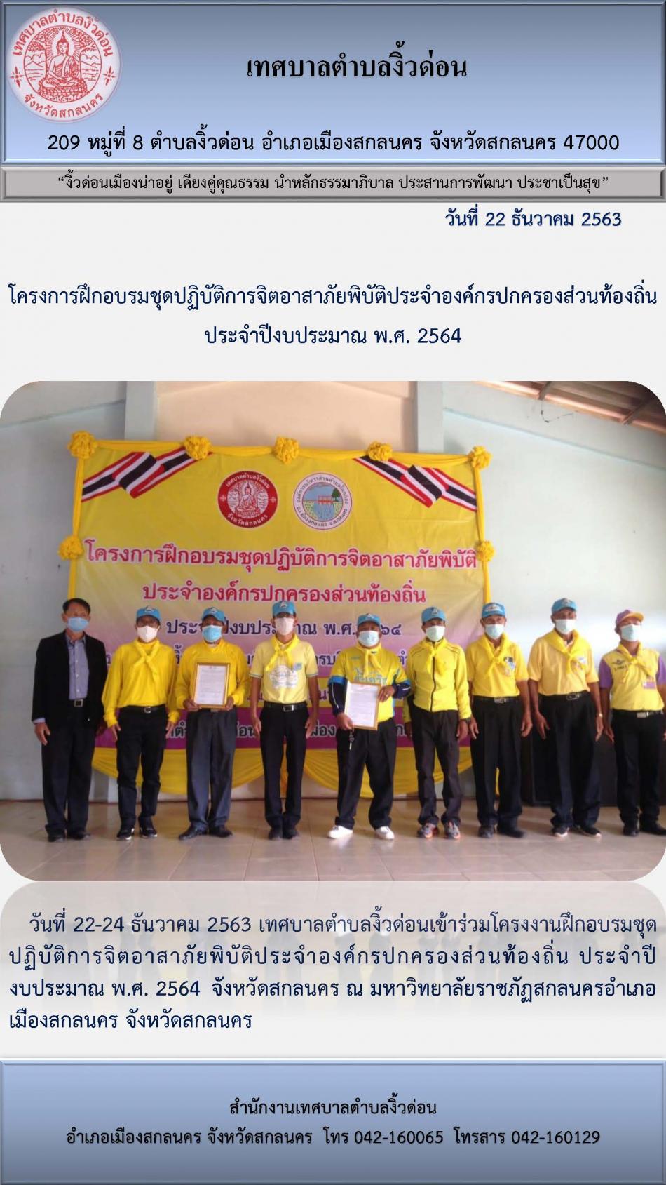 โครงการฝึกอบรมชุดปฏิบัติการจิตอาสาภัยพิบัติประจำองค์กรปกครองส่วนท้องถิ่น ประจำปีงบประมาณ พ.ศ. 2564