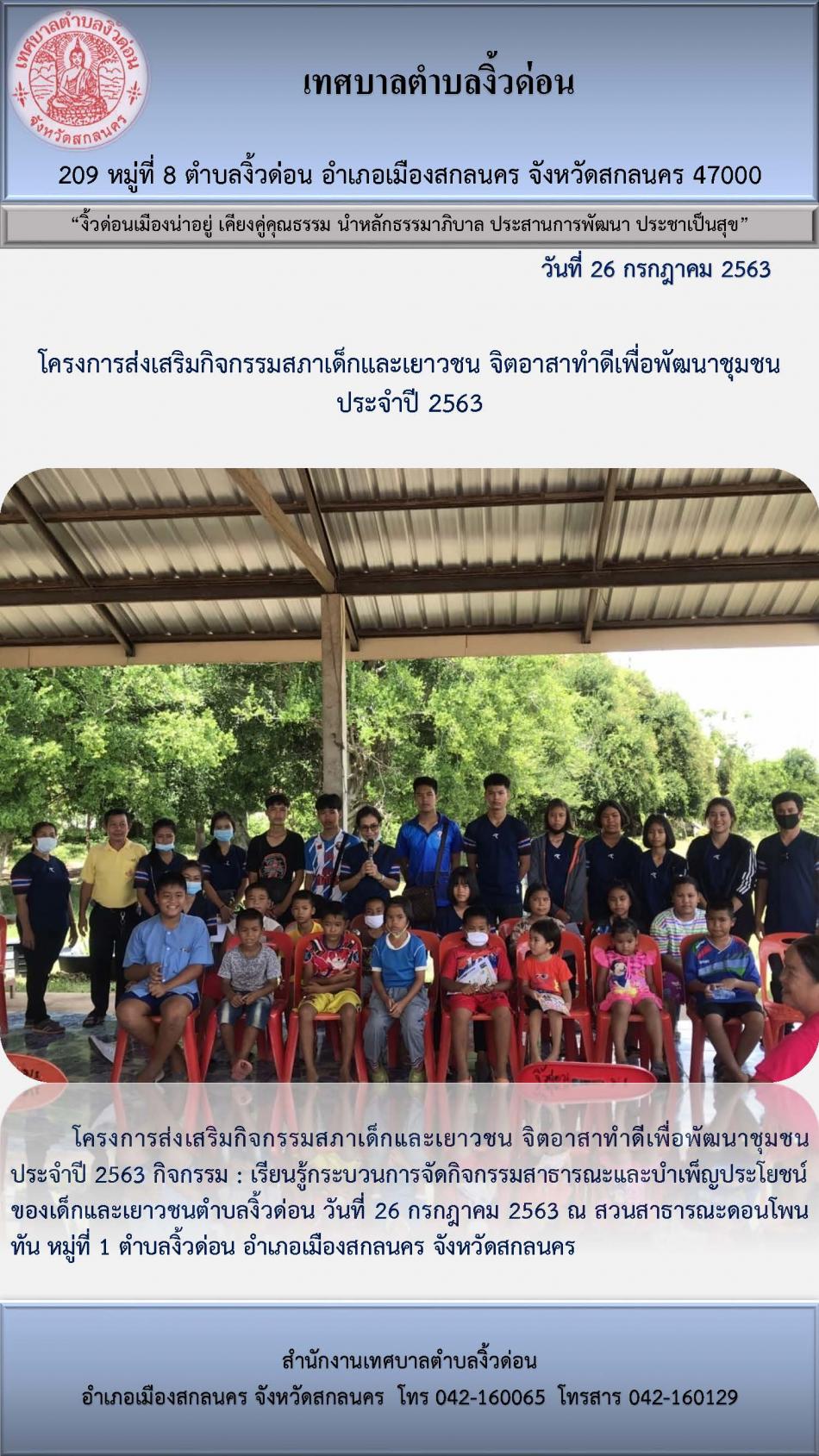 โครงการส่งเสริมกิจกรรมสภาเด็กและเยาวชน จิตอาสาทำดีเพื่อพัฒนาชุมชน ประจำปี 2563