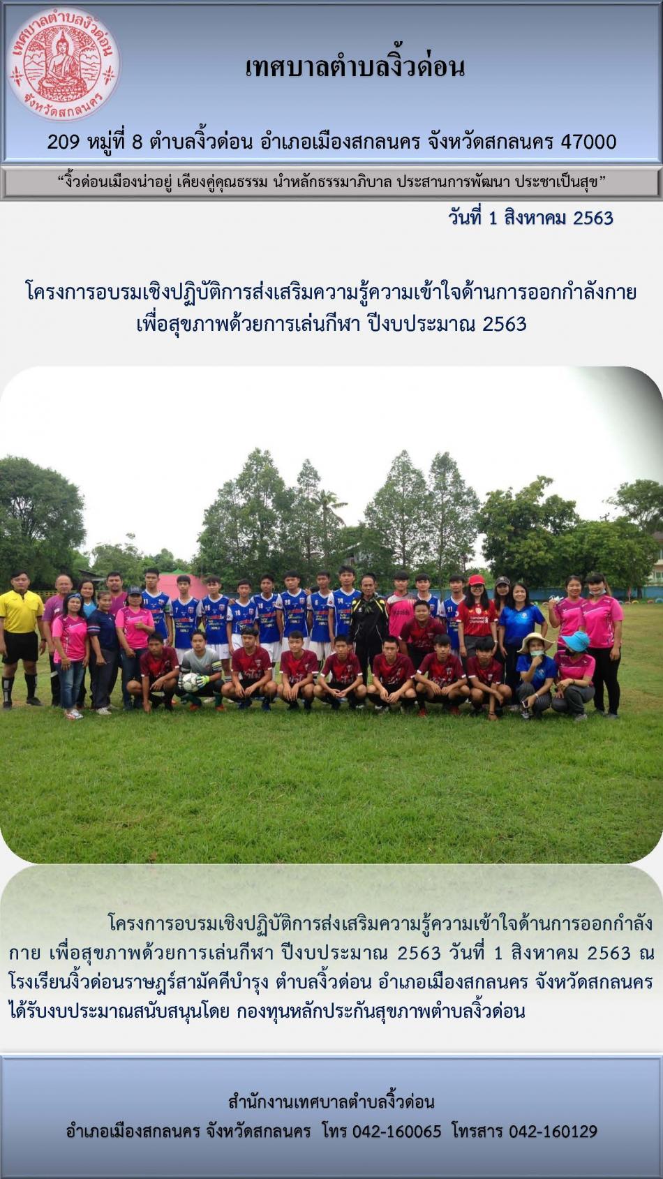 โครงการอบรมเชิงปฏิบัติการส่งเสริมความรู้ความเข้าใจด้านการออกกำลังกาย เพื่อสุขภาพด้วยการเล่นกีฬา ปีงบประมาณ 2563