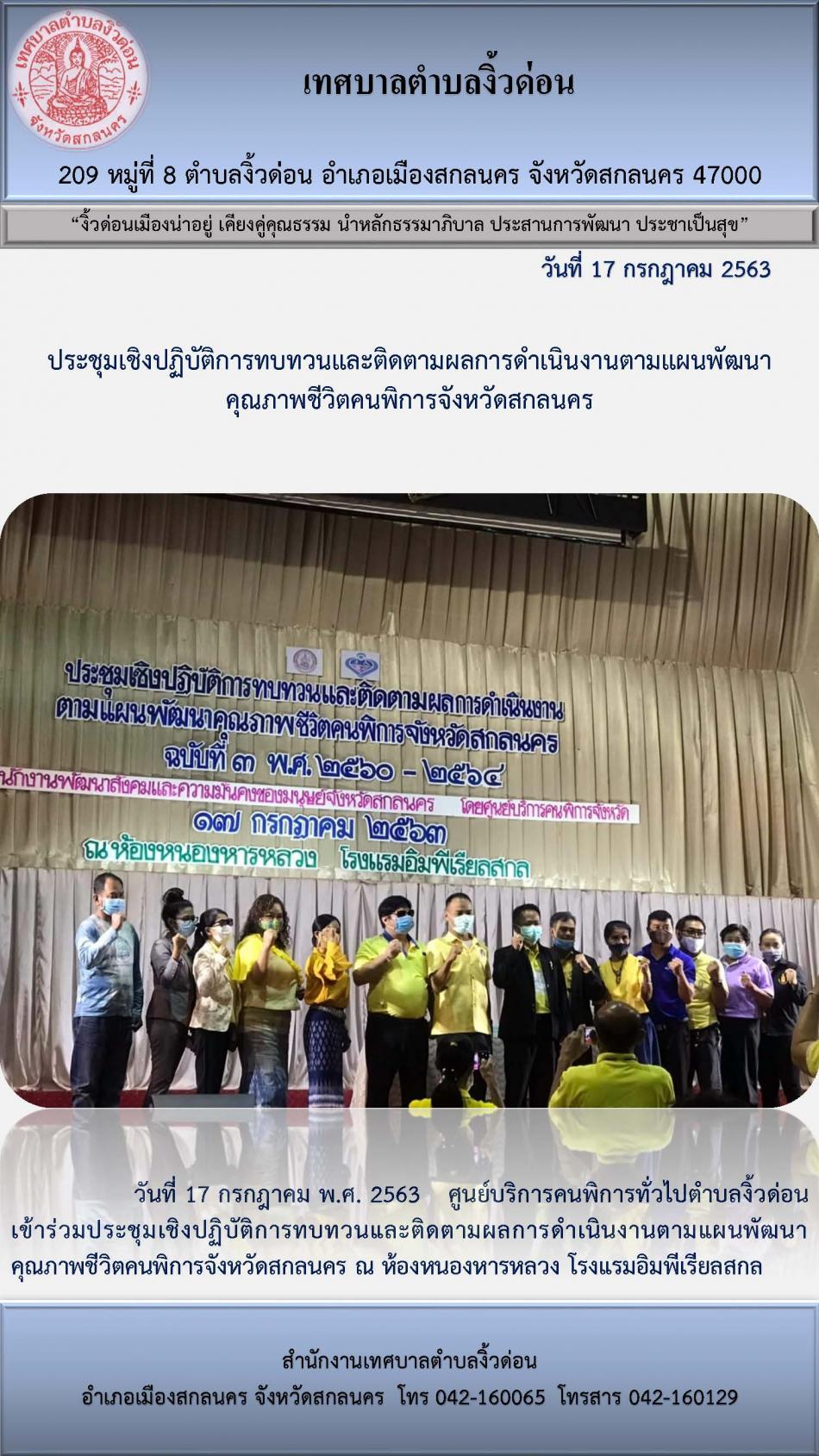 ประชุมเชิงปฏิบัติการทบทวนและติดตามผลการดำเนินงานตามแผนพัฒนาคุณภาพชีวิตคนพิการจังหวัดสกลนคร