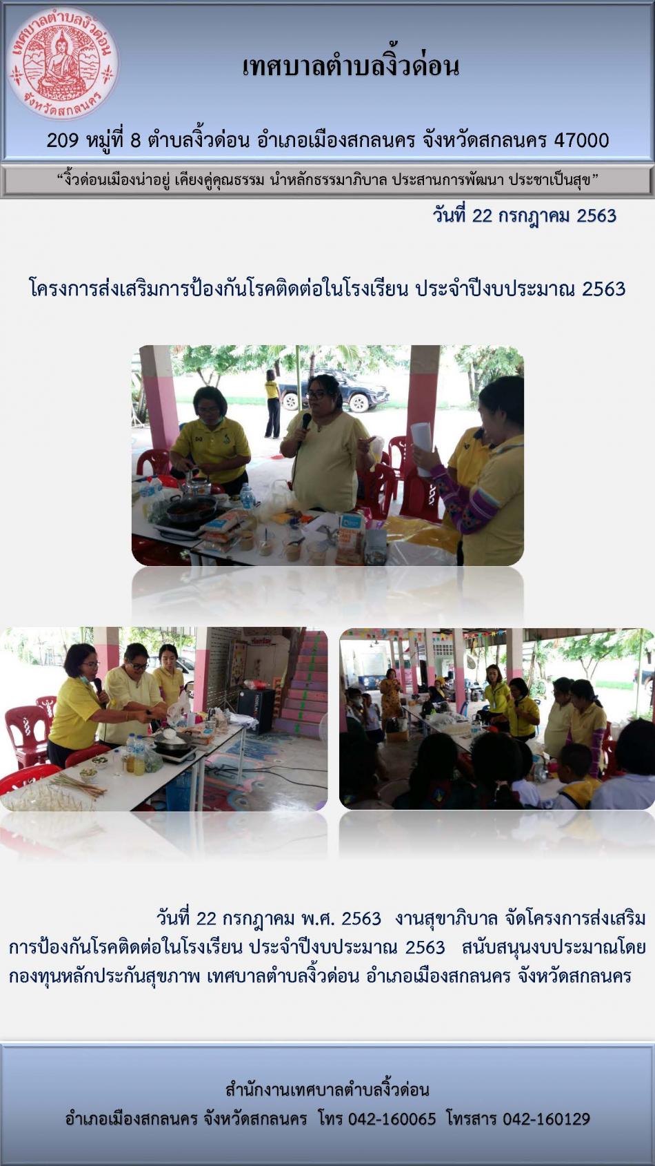 โครงการส่งเสริมการป้องกันโรคติดต่อในโรงเรียน ประจำปีงบประมาณ 2563