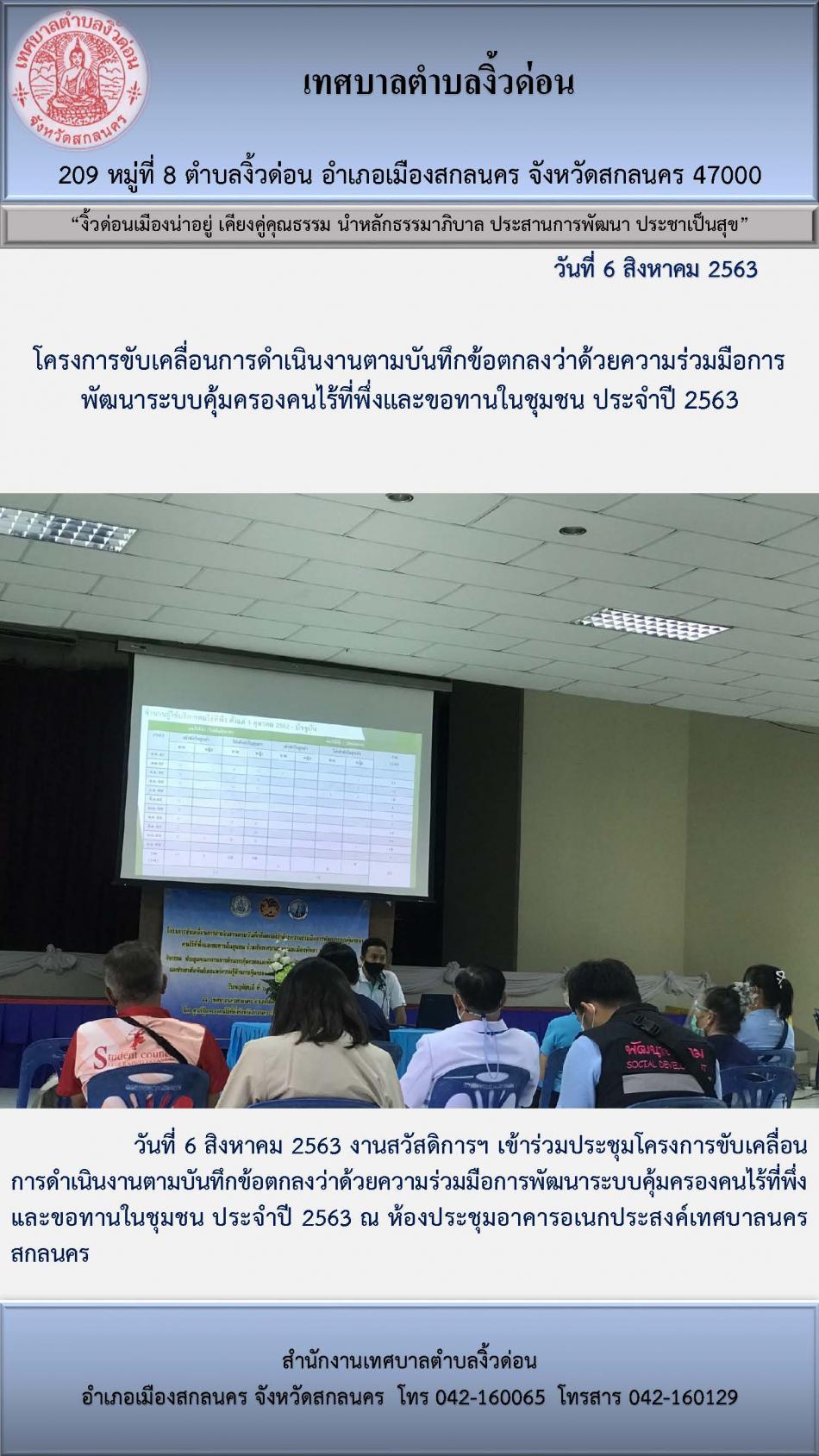 โครงการขับเคลื่อนการดำเนินงานตามบันทึกข้อตกลงว่าด้วยความร่วมมือการพัฒนาระบบคุ้มครองคนไร้ที่พึ่งและขอทานในชุมชน ประจำปี 2563