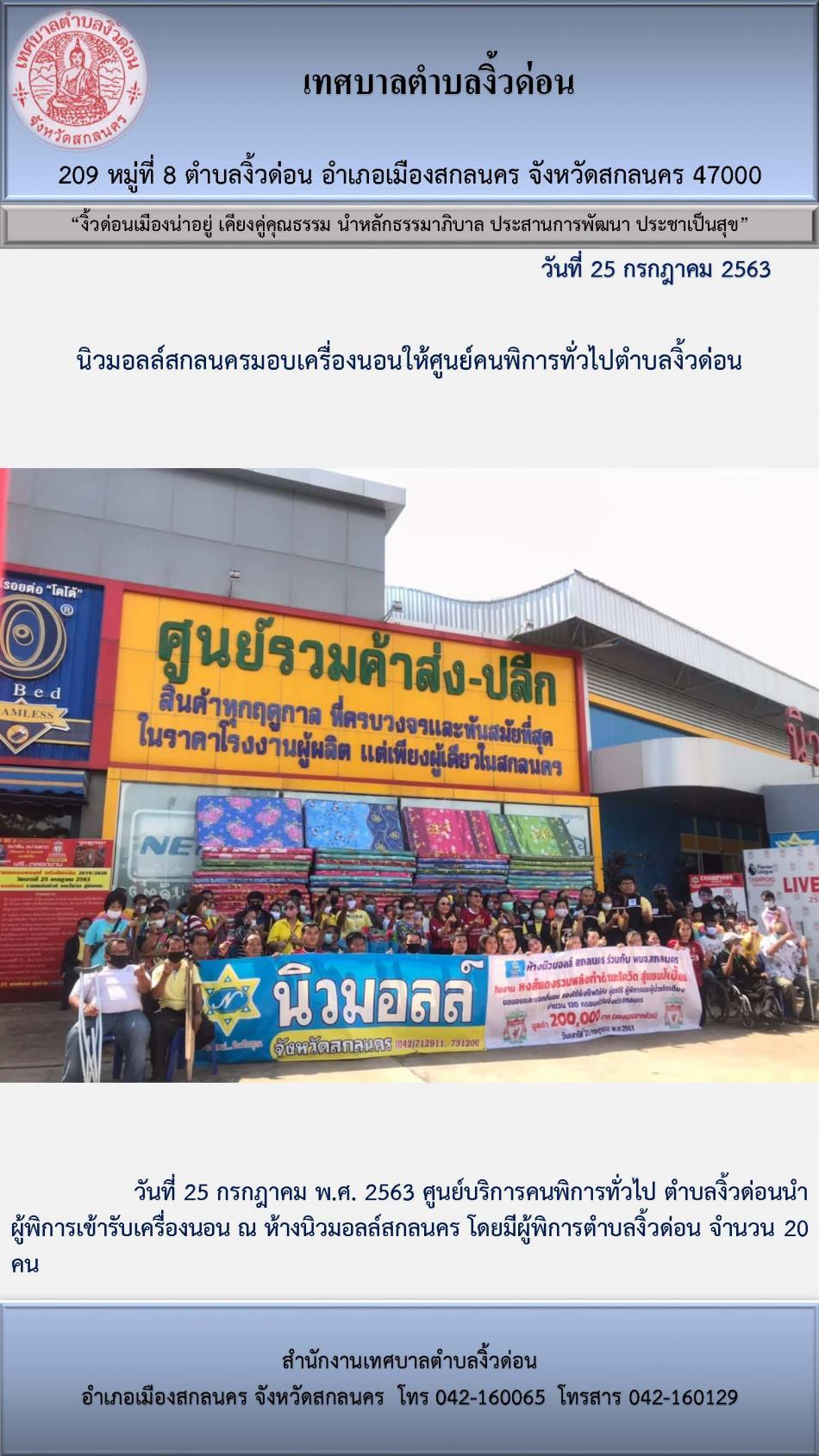 นิวมอลล์สกลนครมอบเครื่องนอนให้ศูนย์คนพิการทั่วไปตำบลงิ้วด่อน