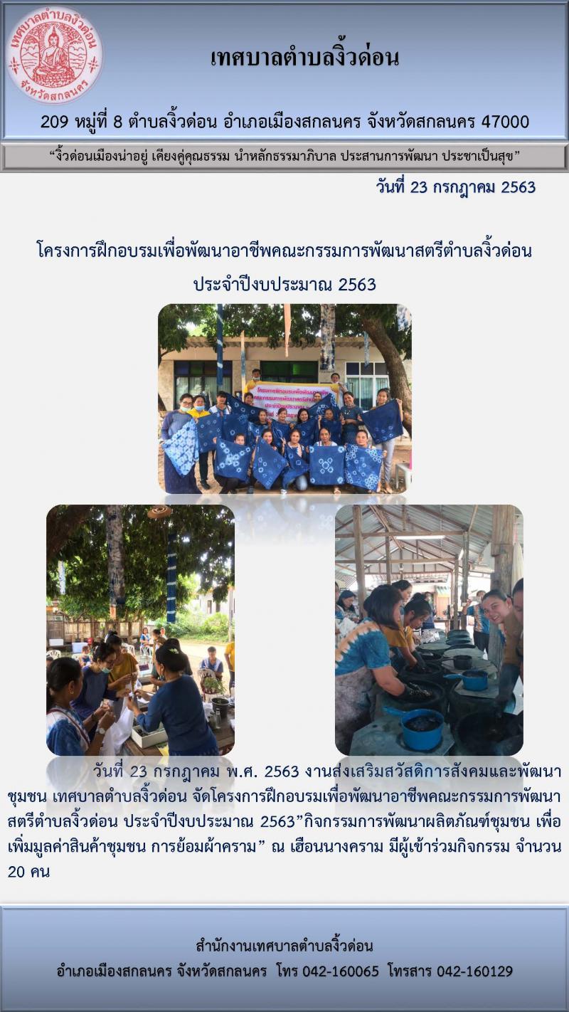 โครงการฝึกอบรมเพื่อพัฒนาอาชีพคณะกรรมการพัฒนาสตรีตำบลงิ้วด่อน ประจำปีงบประมาณ 2363
