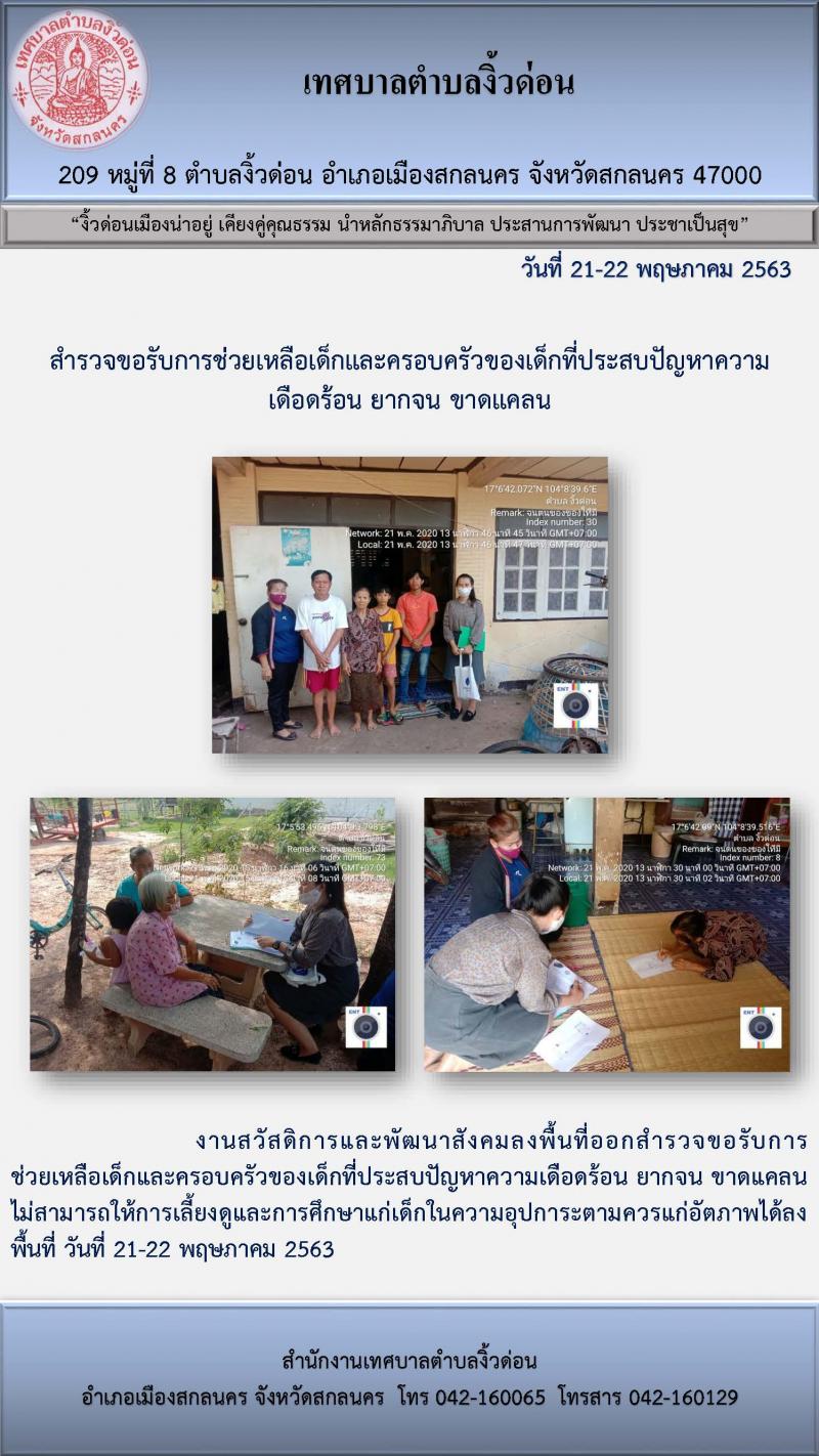 สำรวจขอรับการช่วยเหลือเด็กและครอบครัวของเด็กที่ประสบปัญหาความเดือดร้อน ยากจน ขาดแคลน